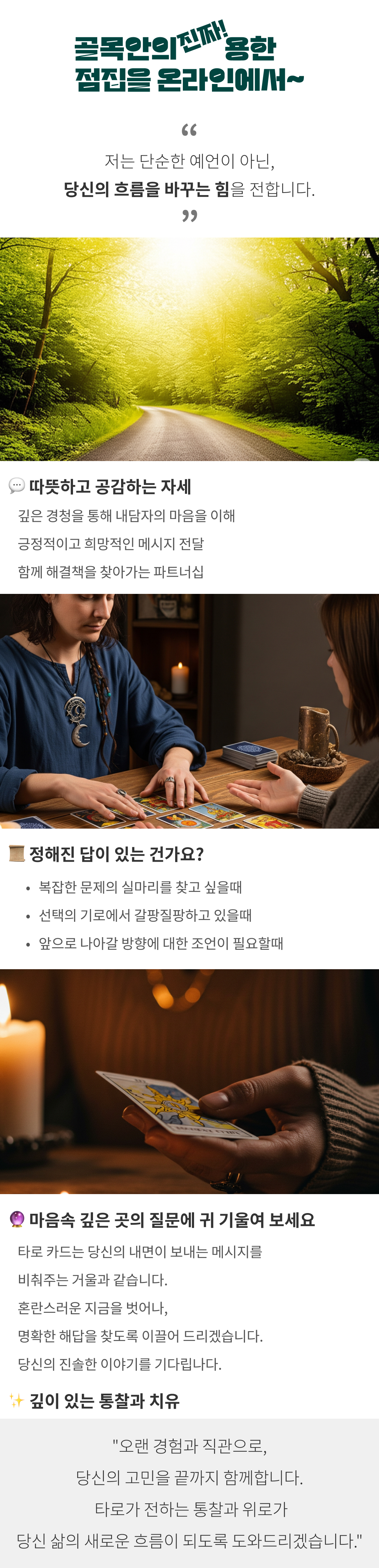 • 상담사가 개인 거래를 요구하는 경우, 즉시 골목점집 고객센터에 신고부탁드립니다.